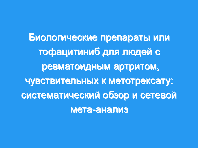 вах низкого качества, результаты были неубедительными для отмены препарата из-за нежелательных явлений (ОР 1,32, но 95% доверительный интервал включал возможность значительного вреда от 0,89 до 1,97). Результаты по раку также были неубедительными (ОР Peto 0,71, 95% ДИ 0,38-1,33) и были понижены до низкого качества доказательств из-за серьезной неточности. Биологический без MTX по сравнению с активным компаратором (испытания MTX 3 (866 участников) Не было доказательств статистически значимых или клинически значимых различий для ACR50, HAQ, ремиссии (доказательства этих преимуществ среднего качества, понижены из-за неточности), отмены из-за нежелательных явлений и серьезных нежелательных явлений (низкое качество доказательства этого вреда, понижены из-за серьезной неточности). Все исследования были посвящены биологической монотерапии ФНО, и ни одно из них не касалось биологической монотерапии без ФНО. Рентгенологическое прогрессирование не измерялось. Выводы авторов: У пациентов с РА, не получавших MTX, были получены доказательства среднего качества, что по сравнению с только MTX, биологические препараты с MTX были связаны с абсолютными и относительными клинически значимыми преимуществами в трех результатах эффективности (ACR50, баллы HAQ и частота ремиссий РА). Польза в отношении меньшего рентгенологического прогрессирования при применении биологических препаратов с MTX не была очевидной (доказательства низкого качества). Мы обнаружили доказательства среднего и низкого качества, что биологическая терапия MTX не была связана с каким-либо более высоким риском серьезных побочных эффектов по сравнению с MTX, но результаты были неубедительными для отмены из-за побочных эффектов и рака до 24 месяцев.Биологическая монотерапия TNF не отличалась статистически значимо или клинически значимо от MTX ни по одному из исходов (доказательства среднего качества), и не было данных для биологической монотерапии, не связанной с TNF.Мы пришли к выводу, что использование biologic with MTX в популяциях, не подверженных MTX, является полезным и что существует мало / неубедительных доказательств вреда. Необходимы дополнительные данные о тофацитинибе, рентгенологическом прогрессировании и вреде для этой популяции пациентов, чтобы полностью оценить сравнительную эффективность и безопасность.