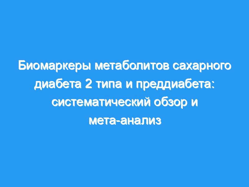 Мы стремились изучить биомаркеры метаболитов, которые можно было бы использовать для выявления преддиабета и сахарного диабета 2 типа (СД2), используя систематический обзор и мета-анализ.