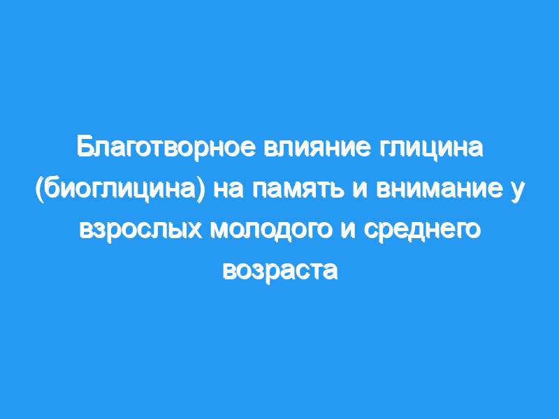 Биоглицин значительно улучшал восстановление эпизодической памяти как в группах молодого, так и среднего возраста, но это не влияло на сосредоточенное или разделенное внимание.