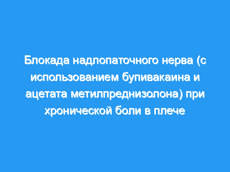 Блокада надлопаточного нерва является безопасным и эффективным методом лечения боли в плече при дегенеративных заболеваниях и/или артрите. Это улучшает боль, инвалидность и диапазон движений в плече по сравнению с плацебо. Это полезное дополнительное лечение для практикующего врача, помогающее в лечении сложной и распространенной клинической проблемы.