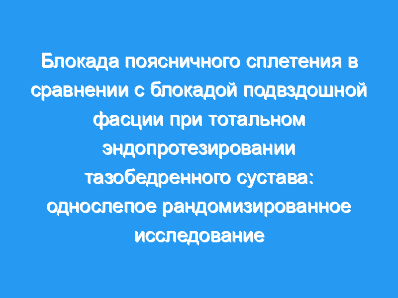 Сравнение блокады поясничного сплетения под ультразвуковым контролем (LPB) и блокады подвздошной фасции (SIFIB) у пациентов, перенесших тотальное эндопротезирование тазобедренного сустава (THA). Дизайн: Рандомизированное исследование эквивалентности.