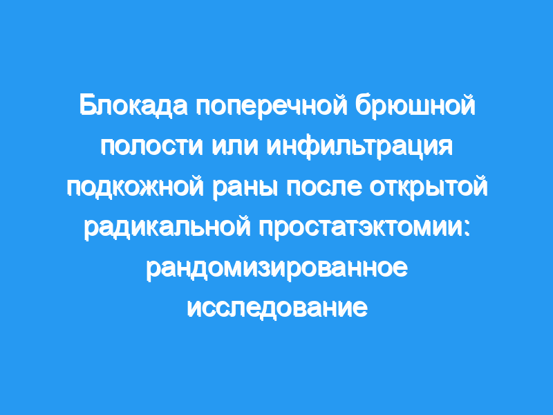Открытая радикальная ретропубикальная простатэктомия (ОРРП) связана с умеренной болью. Мы предположили, что блокада поперечной брюшной полости (TAP) уменьшит послеоперационную боль, потребление морфина и побочные эффекты, связанные с опиоидами, по сравнению с инфильтрацией раны и плацебо в этой популяции.