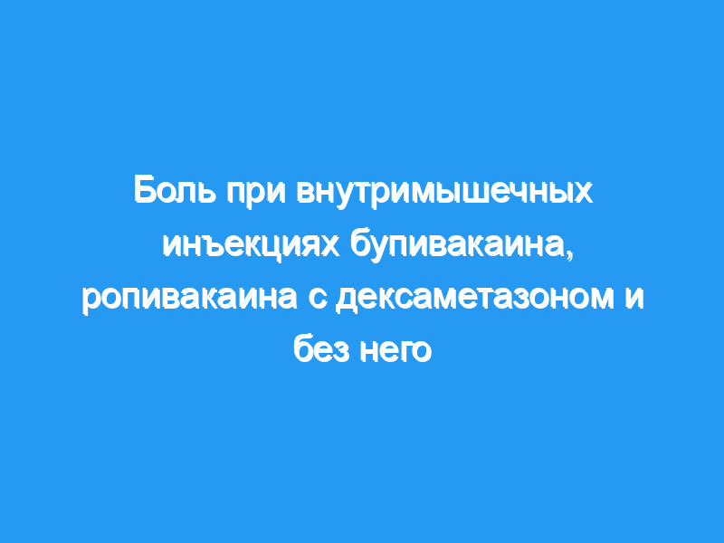 Тридцать добровольцев получили по 5 инъекций: (1) только игла, (2) бупивакаин 0,5%, (3) ропивакаин 0,5%, (4) бупивакаин 0,5% с дексаметазоном 0,13 мг/мЛ и (5) ропивакаин 0,5% с дексаметазоном 0,13 мг/мл. Инъекции делались в верхние трапециевидные мышцы добровольцев, между инъекциями был 15-минутный интервал. Последовательность инъекций была рандомизирована в соответствии с дизайном латинского квадрата. Интенсивность боли оценивалась по шкале от 0 до 10 см визуальной аналоговой шкалы (ВАШ). Ни исследователь, ни доброволец не знали о характере инъекционного препарата. рН вводимых растворов проверяли, чтобы определить, были ли различия в интенсивности боли при инъекции вызваны различиями в рН растворов.