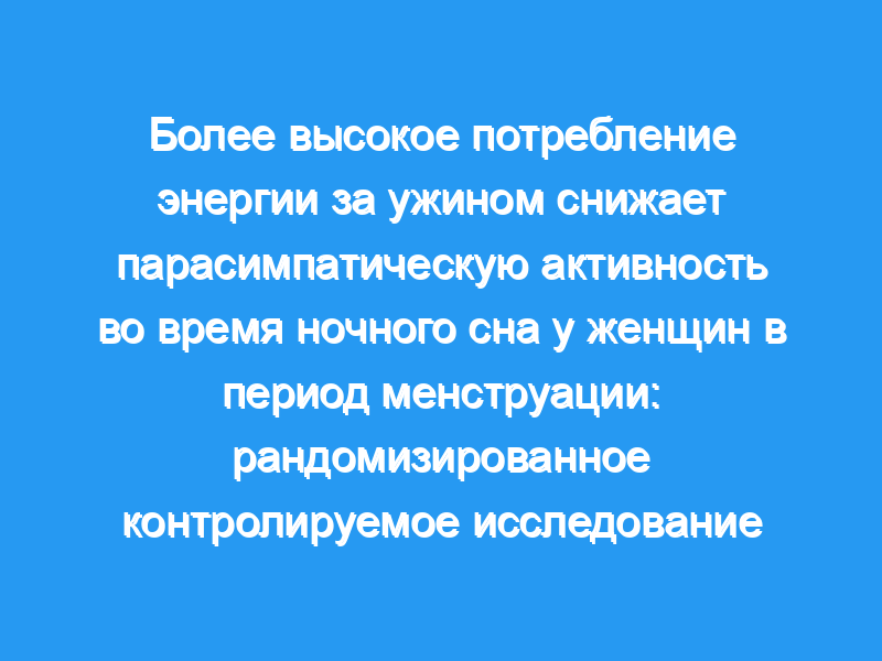 Более высокое потребление энергии за ужином увеличивает и снижает активность SNS и PNS соответственно, что приводит к не восстановительному ночному сну. Кроме того, наблюдалась отрицательная корреляция между прогестероном и активностью ПНС, что подчеркивает сложность повышения активности ПНС во время сна в лютеиновой фазе по сравнению с фолликулярной фазой.