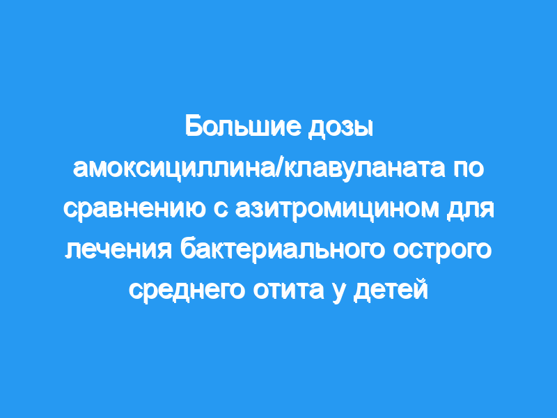 Мы зарегистрировали 730 детей, возбудители АОМ были выделены в исходном состоянии для 249 из группы амоксициллина/клавуланата и 245 из группы азитромицина. Для детей с патогенами АОМ на исходном этапе показатели клинического успеха при посещении в конце терапии составили 90,5% для амоксициллина/клавуланата по сравнению с 80,9% для азитромицина (P <, 0,01), а при посещениях во время терапии и последующих посещениях — 94,9% против 88,0% и 80,3% соответственно. против 71,1% соответственно (все P <, 0,05). При посещении во время терапии патогенные микроорганизмы перед терапией были уничтожены у 94,2% детей, получавших амоксициллин/клавуланат, по сравнению с 70,3% детей, получавших азитромицин (P <, 0,001). Амоксициллин/клавуланат уничтожили 96,0% S. pneumoniae (92,0% полностью устойчивых к пенициллину S. pneumoniae) и 89,7% H. influenzae (85,7% [6 из 7 случаев] положительных по бета-лактамазе H. influenzae). Соответствующие показатели для азитромицина составили 80,4% (54,5%) для S. pneumoniae и 49,1% (100% [1 из 1 случая]) для H. influenzae (все P <, 0,01 для сравнения между препаратами).