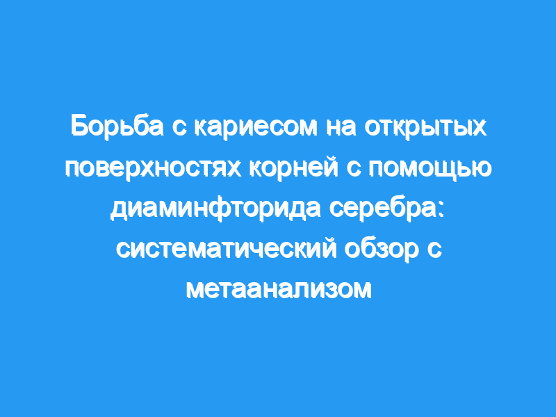В этом систематическом обзоре авторы ставят своей целью оценить влияние диаминфторида серебра (SDF) на профилактику и остановку кариеса на открытых поверхностях корней у взрослых. Типы рассмотренных исследований: Два рецензента независимо искали контролируемые клинические испытания с продолжительностью наблюдения не менее 12 месяцев, без ограничений по языку или дате публикации, в 8 электронных базах данных, 5 реестрах текущих исследований и списках литературы описательных обзоров.