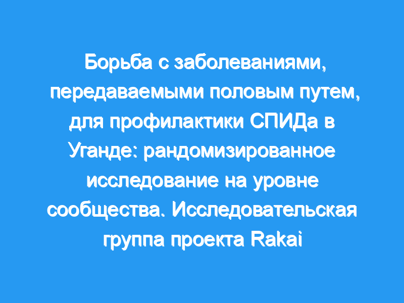Авторы исследования: M J Wawer, N K Sewankambo, D Serwadda, T C Quinn, L A Paxton, N Kiwanuka, F Wabwire-Mangen, C Li, T Lutalo, F Nalugoda, C A Gaydos, L H Moulton, M O Meehan, S Ahmed, R H Gray