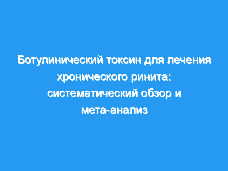 Ботулинический токсин типа А (BTX-A) является потенциальным средством для лечения хронического ринита. Целью данного исследования была оценка эффективности и безопасности BTX-A при лечении пациентов с хроническим ринитом.