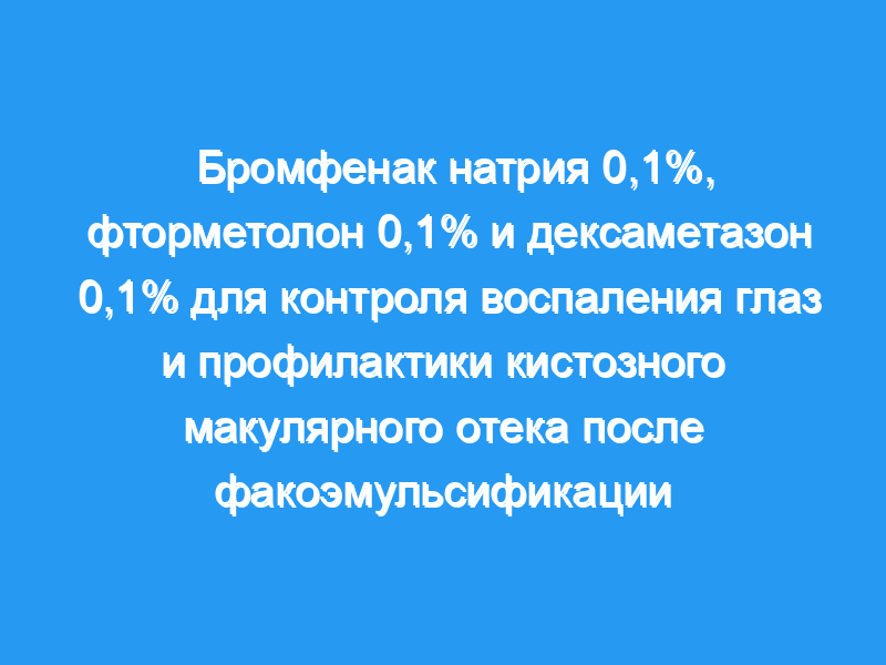 Сравнить бромфенак натрия 0,1%, фторметолон 0,1% и дексаметазон 0,1% для контроля послеоперационного воспаления и профилактики кистозного макулярного отека (CME) после факоэмульсификации.