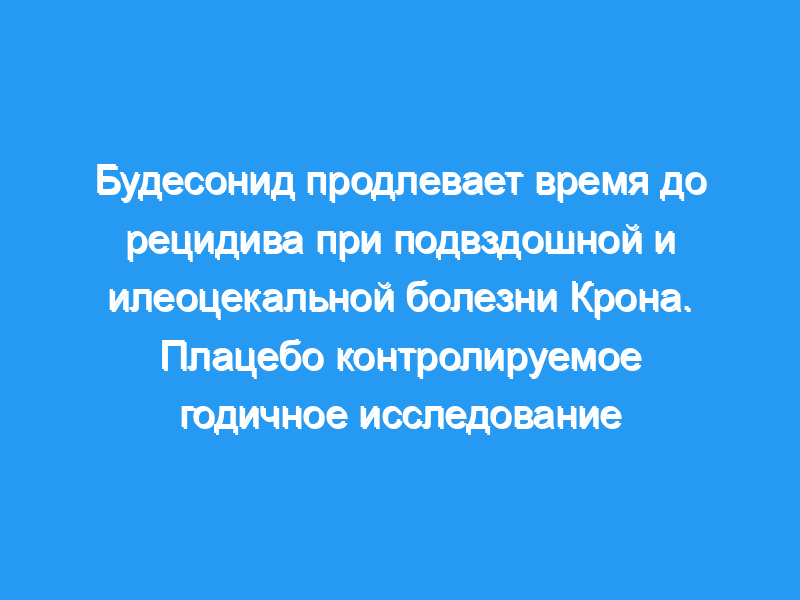 Предпосылки и цели: Оценить эффективность и безопасность местного кортикостероида будесонида, вводимого в форме перорального препарата с контролируемым высвобождением для поддержания ремиссии у пациентов с подвздошной и илеоцекальной болезнью Крона (БК). Пациенты и методы: Из 176 пациентов с активным БК, которые достигли ремиссии (оценка индекса активности БК <, or = 150) после 10 недель лечения будесонидом или преднизолоном, 90 были рандомизированы для продолжения однократного ежедневного приема 6 мг будесонида или 3 мг будесонида или плацебо в течение до до 12 месяцев в двойном слепом многоцентровом исследовании. Время до симптоматического рецидива рассчитывали с использованием оценок Каплана-Мейера. Утренний уровень кортизола в плазме крови измеряли при посещении клиники, а через три месяца лечения проводили тест на стимуляцию кортикотропином.