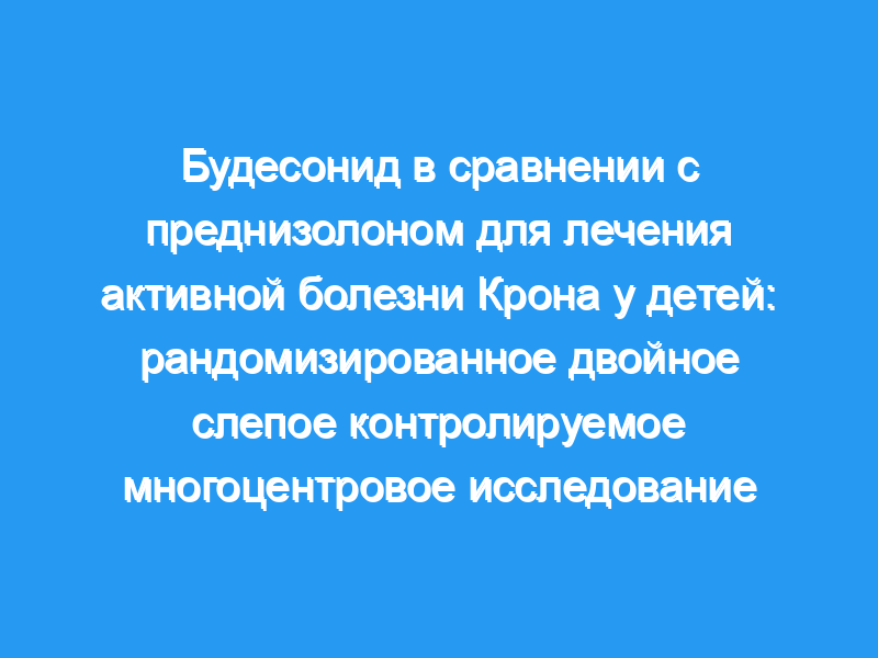 Будесонид — это кортикостероид с низкой системной биодоступностью из-за его высокого метаболизма при первом прохождении в печени. В этом педиатрическом рандомизированном двойном слепом контролируемом многоцентровом исследовании безопасность и эффективность будесонида по сравнению с преднизолоном оценивались у детей с активной формой болезни Крона. Сорок восемь детей в возрасте 6-16 лет с активной болезнью Крона (Индекс активности болезни Крона >, 200), поражающей подвздошную кишку и/или восходящую ободочную кишку, были рандомизированы для получения будесонида (9 мг/сут в течение 8 недель, 6 мг/сут в течение 4 недель) или преднизолон (1 мг/кг/сут в течение 4 недель, снижая дозу в течение 8 недель).