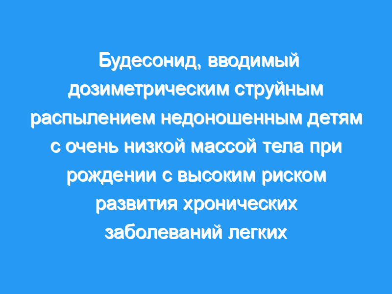 Мы исследовали влияние аэрозольного кортикостероида (будесонида) на потребность в кислороде у младенцев с высоким риском развития хронической болезни легких (ХБП) в рандомизированном двойном слепом исследовании. Целью исследования было достижение снижения уровня FiO2 на 30% в группе, получавшей будесонид, после 14 дней терапии. Тридцать младенцев с очень низкой массой тела при рождении (VLBW) (медиана (диапазон)) гестационный возраст 26 недель (23-29) и масса тела при рождении 805 г (525-1227) были рандомизированы. Критериями включения были искусственная вентиляция легких на 6-й день жизни или экстубация при постоянном положительном давлении в носовых дыхательных путях с FiO2 >, or = 0,3. Доза будесонида (Пульмикорта) составляла 500 мкг бид или плацебо. Аэрозоль подавался с помощью дозиметрического струйного распылителя с изменяемым временем вдоха и чувствительностью к дыханию. Ингаляции были начаты на 7-й день жизни. Двадцать семь пациентов завершили исследование. Значительного снижения уровня FiO2 на 21 день жизни обнаружено не было. Младенцы, получавшие будесонид, чаще подвергались экстубации в течение периода исследования (7/8 против 2/9) и имели большее относительное изменение индекса оксигенации по сравнению с исходным уровнем (будесонид снизился на 26% по сравнению с плацебо, увеличившись на 60%). Последующее применение внутривенного дексаметазона или ингаляционного будесонида в группе лечения было значительно меньше. Всем пациентам требовалась добавка O2 на 28-й день жизни. В постконцептуальном возрасте 36 недель 61% младенцев в группе будесонида нуждались в дополнительном О2 по сравнению с 79% в группе плацебо. Никаких побочных эффектов на рост или функцию надпочечников не наблюдалось.