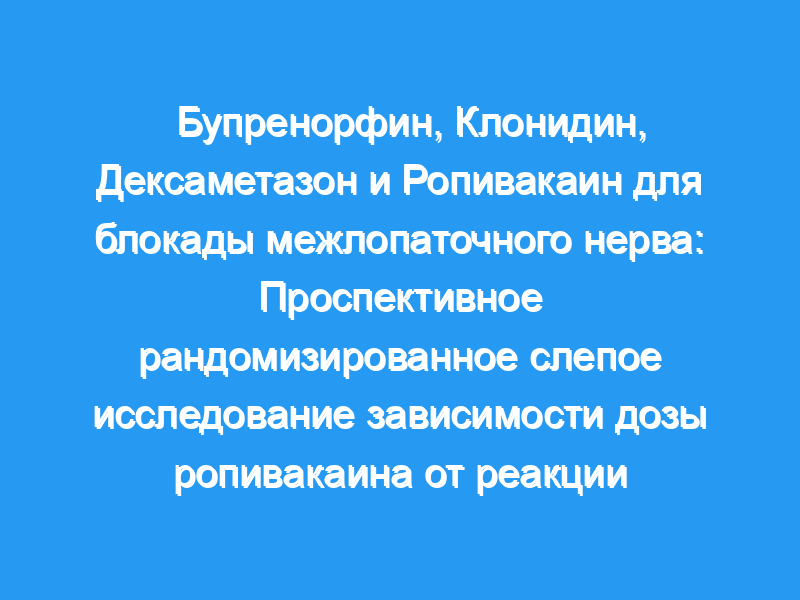 Пациенты (20/группа) получали ацетаминофен, кеторолак, прегабалин, опиоиды и «Контроль», интерскалиновый блок, 0,375% ропивакаин, внутривенные добавки (бупренорфин, клонидин, дексаметазон), «Высокие дозы», 0,375% ропивакаин, периневральные добавки, «Средние дозы», 0,2% ропивакаина, периневральные добавки, и «Низкая доза», 0,1% ропивакаина, периневральные добавки.
