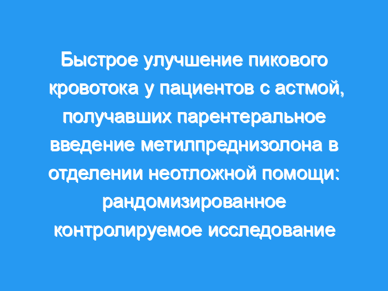 В рандомизированном двойном слепом плацебо-контролируемом исследовании 56 взрослых пациентов с астмой с пиковой скоростью выдоха (PEFR) менее было изучено более 50% прогнозируемых результатов после первоначальной обработки аэрозолем альбутерола. Эти пациенты были рандомизированы на лечение либо 125 мг внутривенного метилпреднизолона, либо эквивалентным объемом обычного физиологического раствора (плацебо). Пациенты также получали идентичные схемы распыления ипратропия и альбутерола. Пациенты были набраны из отделения неотложной помощи городского академического медицинского центра. Основными конечными точками были изменения в PEFR и в процентах прогнозируемого PEFR с течением времени. PEFR оценивали на исходном уровне и через 1 и 2 часа. Также сравнивались изменения частоты сердечных сокращений с течением времени и доля госпитализаций в 2 группах.