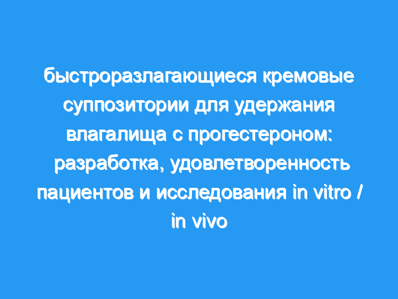 Нашей целью было разработать новые кремовые суппозитории для удержания влагалища (ВРК) с прогестероном, обладающие быстрым распадом и хорошей вагинальной фиксацией.