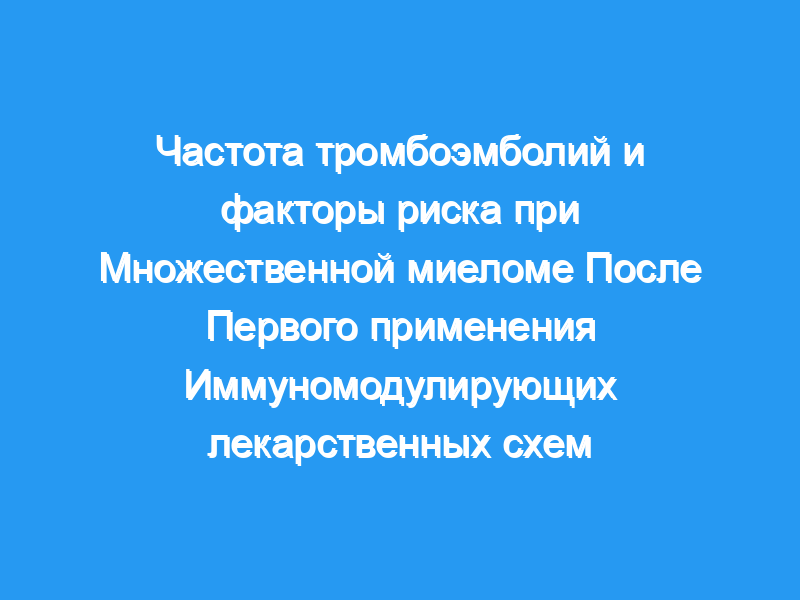 Мы оценили время до тромбоэмболии (ТЭ) и факторы риска у пациентов с множественной миеломой (ММ) после первого воздействия иммуномодулирующей терапии, стратифицированной по тромбопрофилактике. Пациенты и методы: Мы ретроспективно проанализировали взрослых пациентов с ММ, которые получали иммуномодулирующую терапию с дексаметазоном или без него в период с февраля 2012 года по октябрь 2017 года. Тромбопрофилактика включала аспирин, антикоагулянты (низкомолекулярный гепарин, прямые пероральные антикоагулянты или варфарин) или отсутствовала вообще. Первичной конечной точкой было время до начала лечения в зависимости от типа тромбопрофилактики. В однофакторном и многофакторном анализах для выявления факторов риска использовалось время до TE, использующее смерть в качестве конкурирующего риска с цензурой в 12 месяцев.
