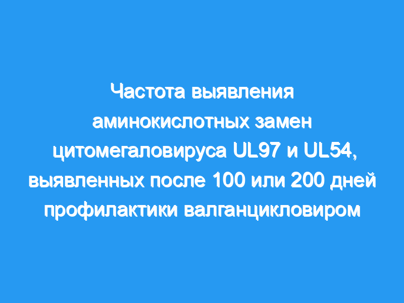 Определить, увеличивает ли продление профилактики валганцикловиром со 100 дней до 200 дней частоту резистентности к ганцикловиру. План исследования: Генотипический анализ ЦМВ UL97 и UL54 был проведен на вирусах, выделенных от пациентов, отвечающих заранее определенным критериям анализа резистентности (RAC).