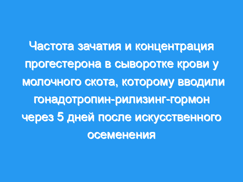 Таким образом, результаты этого исследования показали, что ГнРГ, введенный через 5 дней после ИИ, повышал уровень прогестерона в сыворотке крови за счет развития дополнительного CL, но не не улучшает показатели зачатия у молочного скота.