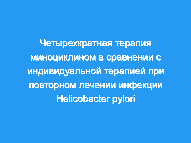 Индивидуальная терапия в этом исследовании имела низкую эффективность эрадикации у пациентов, перенесших рецидив инфекции H. pylori.Четырехкратная терапия миноциклином достигла относительно удовлетворительной эффективности эрадикации и может быть альтернативным выбором для повторного лечения инфекции H. pylori. Регистрация клинических испытаний: Китайский реестр клинических испытаний, ChiCTR-TRC-13003975.