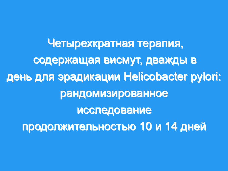 Сравнить эффективность и переносимость четырехкратной эрадикационной терапии H. pylori, содержащей висмут, дважды в день в течение 10 по сравнению с 14 днями в неполноценном исследовании.
