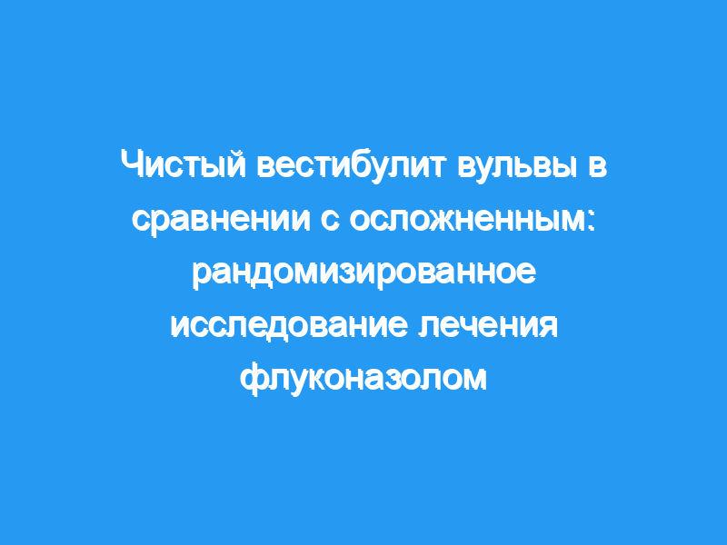 Сорок женщин с вестибулитом были рандомизированы в одну из двух групп лечения. Одна группа получала 6-месячную низкооксалатную диету с добавлением цитрата кальция в качестве плацебо, а вторая группа — ту же диету и цитрат кальция с добавлением еженедельной пероральной таблетки 150 мг флуконазола. Женщины были обследованы через 3 месяца после завершения лечения на предмет ответа на терапию.