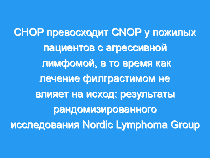 Не удалось продемонстрировать преимущества G-CSF с точки зрения TTF и OS (P =0,96 и P =0,22 соответственно), в то время как CHOP превосходил CNOP (TTF/OS P <,0,001). Частота тяжелой гранулоцитопении (IV степень Всемирной организации здравоохранения) и гранулоцитопенических инфекций была выше у пациентов, не получавших G-CSF. Совокупная доля пациентов, получавших 90% или более назначенной химиотерапии, была выше (P <,0,05) у пациентов, получавших G-CSF. Сопутствующее лечение G-CSF не улучшало частоту CR, TTF или OS. Пациенты, получавшие CHOP, чувствовали себя лучше, чем те, кто получал химиотерапию CNOP.
