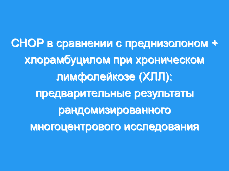 До настоящего времени 144 таких пациента были рандомизированы либо на преднизолон (PRD) плюс хлорамбуцил (CLB) 5 дней каждые 4 недели, либо на ежемесячное интенсивное лечение CHOP.