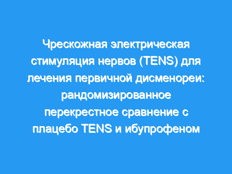 Значительно больше испытуемых, получавших лечение TENS, не нуждались в спасательных препаратах или нуждались в меньшем количестве резервного ибупрофена через 0-4, 4-8 и 8-12 часов после начала дисменореи и начала лечения, а также в течение первых 24 часов и в течение всего менструального цикла, по сравнению с с плацебо-десятками или циклами лечения ибупрофеном (множественное сравнение по Тьюки, Р менее 0,01). Чрескожная электрическая стимуляция нервов значительно отсрочила потребность в ибупрофене в среднем на 5,9 часа по сравнению с 0,7 часа при использовании только ибупрофена (P менее 0,05, парный t-тест). Только чрескожная электрическая стимуляция нервов обеспечила хорошее или превосходное субъективное облегчение боли у 42,4% испытуемых, по сравнению с 3,2% при использовании плацебо TENS, и значительно уменьшила диарею, менструальные выделения, образование тромбов и усталость по сравнению с плацебо TENS. Чрескожная электрическая стимуляция нервов плюс меньшее количество ибупрофена обеспечивали облегчение боли, эквивалентное тому, которое было получено при применении только ибупрофена (71 и 75% испытуемых соответственно). Мы пришли к выводу, что TENS является безопасным, эффективным, немедикаментозным методом лечения первичной дисменореи и что TENS плюс ибупрофен были лучшим общим лечением, о чем свидетельствует облегчение боли.