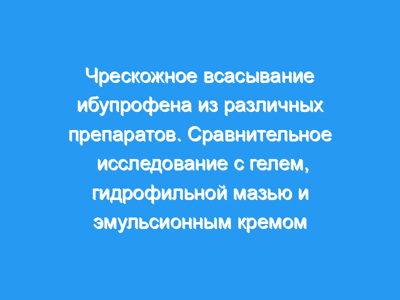 В трехстороннем перекрестном исследовании на 6 здоровых взрослых добровольцах изучали чрескожную абсорбцию ибупрофена (CAS 15687-27-1) с использованием 3 местных препаратов, содержащих 5% в/в ибупрофена в геле (Ипрогель) или в гидрофильной мази или в эмульсионном креме.
