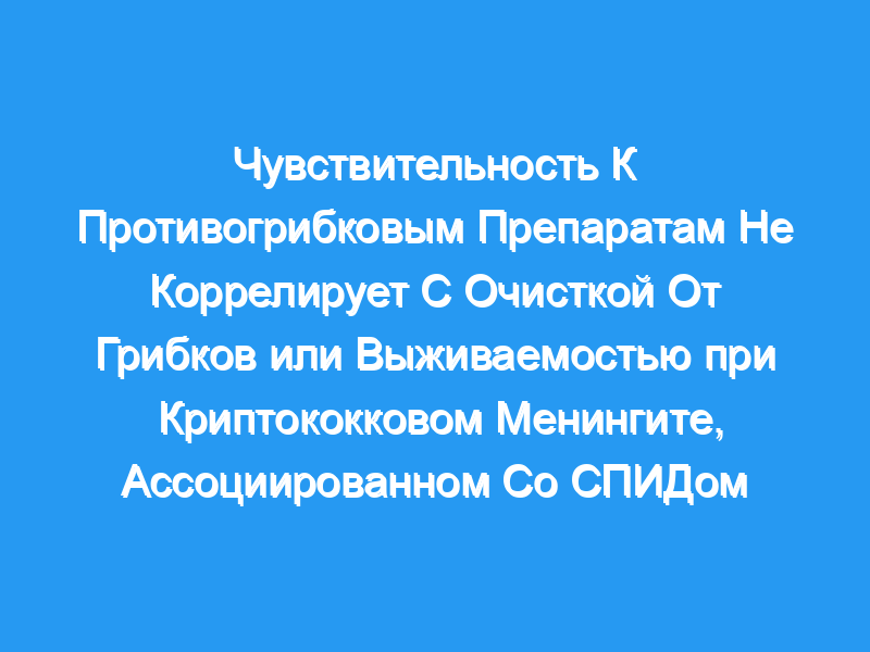 Мы исследовали значение тестирования на чувствительность для прогнозирования ответа при криптококковом менингите, ассоциированном со СПИДом, с использованием клинических изолятов из рандомизированного контролируемого исследования противогрибкового лечения (монотерапия амфотерицином, амфотерицином с флуцитозином или амфотерицином с флуконазолом). Мы не обнаружили корреляции между восприимчивостью к противогрибковым препаратам и ранней или поздней выживаемостью или клиренсом от грибков.
