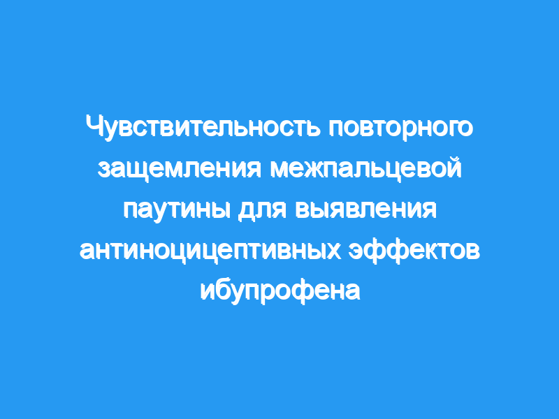 Болевые пороги и чувствительность к серии из четырех сеансов защемления межпальцевой паутины (сила 12 Ньютонов) были измерены у 26 добровольцев мужского пола до и через 1 и 3 ч после перорального приема ибупрофена (800 мг) или плацебо к ибупрофену. В каждый момент времени измеряли болевые пороги путем вычисления средних визуальных аналоговых баллов (ВАШ) для первого сеанса ущипывания (ВАШ-1). Чувствительность к пощипыванию оценивали путем вычисления средних изменений этих показателей за три последующих сеанса пощипывания (ВАШ-2). Более того, разница между показателем ВАШ после первого сеанса ущипывания и тем, который был получен в конце четвертого сеанса ущипывания, была рассчитана как вторичная конечная точка (ВАШ-3).