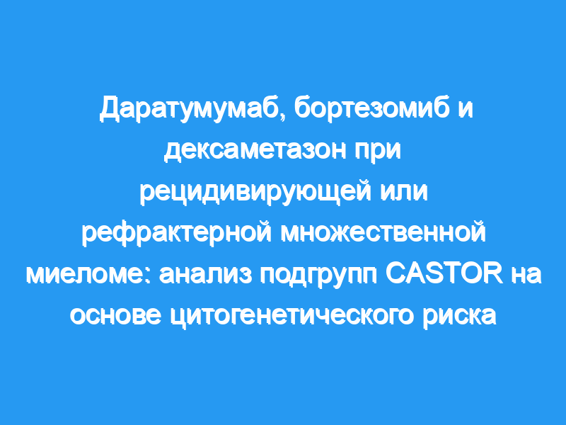 Пациенты с множественной миеломой (ММ) с высоким цитогенетическим риском имеют плохие исходы. В CASTOR даратумумаб плюс бортезомиб/дексаметазон (D-Vd) увеличивали выживаемость без прогрессирования (PFS) по сравнению с бортезомибом/дексаметазоном (Vd) отдельно и демонстрировали переносимость у пациентов с рецидивирующей или рефрактерной ММ (RRMM).