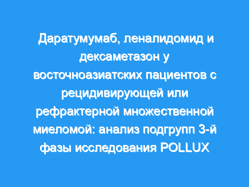 только леналидомид и дексаметазон (Rd) у пациентов с рецидивирующей/рефрактерной множественной миеломой (RRMM). Мы сообщаем об анализе подгрупп восточноазиатских (японских, корейских и тайваньских) пациентов из POLLUX, основанном на более длительном наблюдении 24,7 месяца.