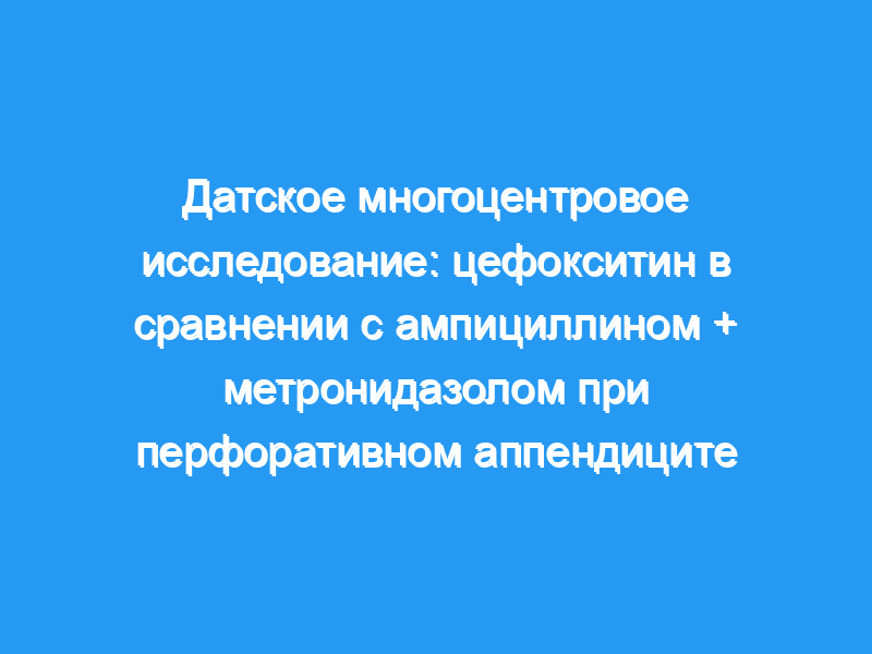 Однако цефокситин значительно превосходил ампициллин + метронидазол в предотвращении внутрибрюшных абсцессов (P менее 0,05). Цефокситин предлагает однократное медикаментозное лечение, которое адекватно уменьшает послеоперационные инфекционные осложнения у пациентов, перенесших операцию по поводу перфоративного или разрывного аппендицита.