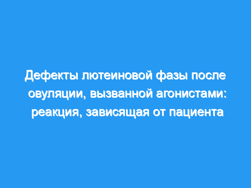 Дефектная ЛП, наблюдаемая после вызванной агонистами овуляции, не возникает случайным образом, поэтому эта реакция, зависящая от пациента, может быть связана с личными особенностями профиля физиологического всплеска до овуляции у каждой пациентки.