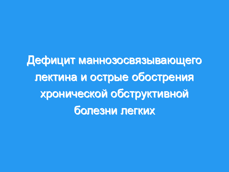В большой выборке пациентов с хронической обструктивной болезнью легких, отобранных из-за повышенного риска обострения хронической обструктивной болезни легких, только у 1,9% концентрация маннозосвязывающего лектина была ниже нормы, и мы не обнаружили никакой связи между концентрациями маннозосвязывающего лектина и время до первого острого обострения или частота острых обострений в течение одного года проспективного наблюдения.