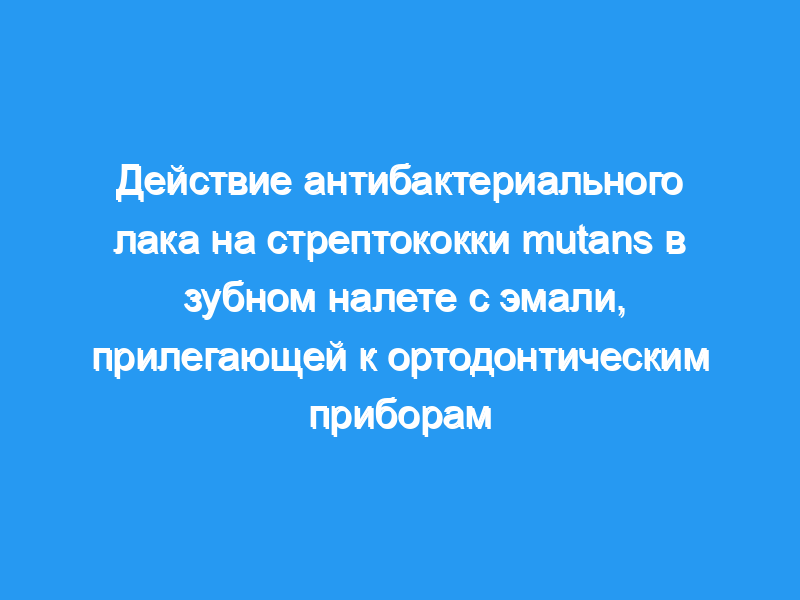 Результаты показывают, что мутантные стрептококки в зубном налете ортодонтических пациентов могут быть эффективно подавлены местным нанесением антибактериального лака.