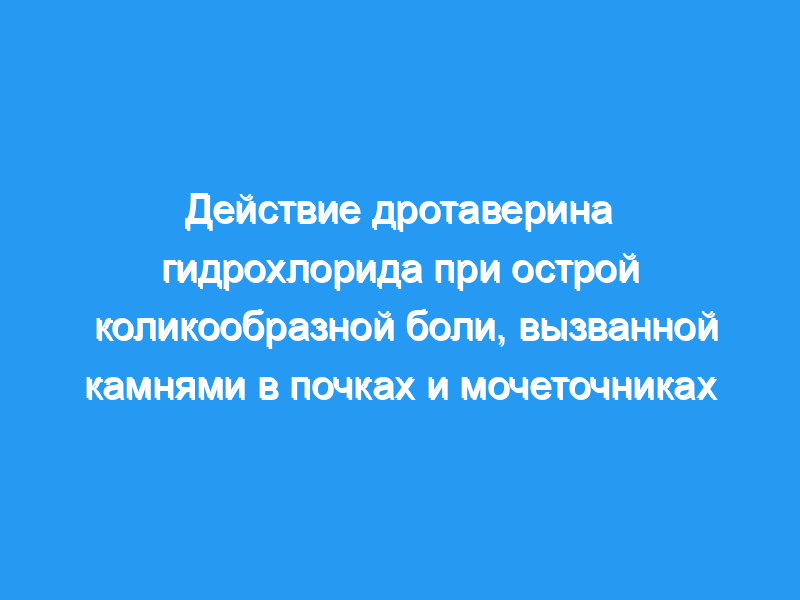 Внутривенное введение дротаверина обеспечивает эффективное обезболивание более чем у двух третей пациентов с почечной коликой без каких-либо серьезных побочных эффектов.