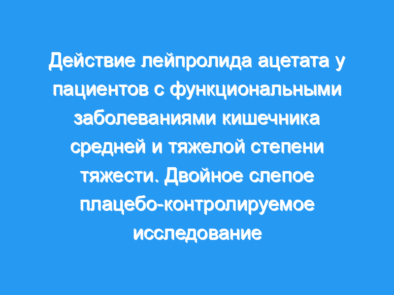Мы проспективно исследовали эффект гонадотропин-рилизинг-гормона. аналог гормона, лейпролида ацетат, у 30 женщин с симптомами функциональных заболеваний кишечника средней и тяжелой степени тяжести.