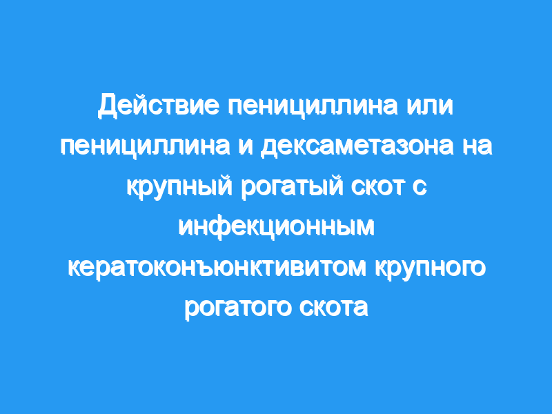 Чтобы оценить эффективность пенициллина или пенициллина и дексаметазона для лечения инфекционного кератоконъюнктивита крупного рогатого скота, 6-8-месячные телки с клиническими признаками инфекционного кератоконъюнктивита крупного рогатого скота были случайным образом распределены в 1 из 3 групп лечения: только пенициллин, пенициллин и дексаметазон или противопоказания.