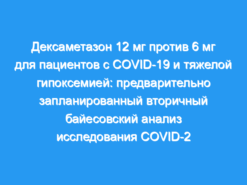 Мы сравнили дексаметазон 12 против 6 мг ежедневно в течение 10 дней у пациентов с коронавирусной болезнью 2019 года (COVID-19) и тяжелой гипоксемией в международном рандомизированном слепом исследовании COVID-2. В первичном, обычном анализе не были достигнуты предопределенные пороговые значения статистической значимости. Мы провели заранее запланированный байесовский анализ, чтобы облегчить вероятностную интерпретацию.
