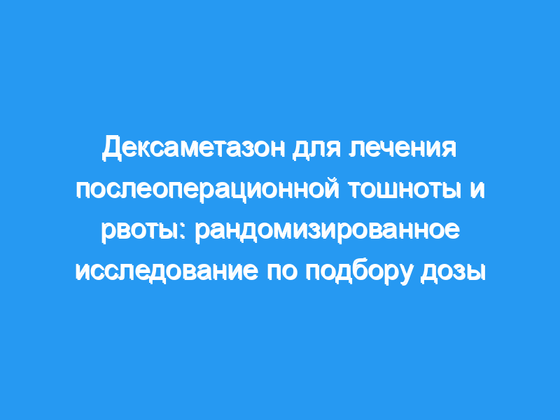 Дексаметазон широко используется для профилактики послеоперационной тошноты и рвоты (PONV), но мало что известно о его эффективности для лечения установленной PONV.