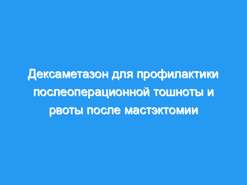 Послеоперационная тошнота и рвота (PONV) являются распространенным осложнением после мастэктомии. Хотя во многих исследованиях изучался профилактический эффект противорвотных средств, ни один из результатов не является эффективным. Чтобы преодолеть эту проблему, дексаметазон был использован для облегчения возникновения PONV. Поскольку опасения по поводу заболеваемости, связанной со стероидами, все еще сохраняются, мы провели мета-анализ для оценки влияния профилактического дексаметазона на PONV, послеоперационную боль при мастэктомии.