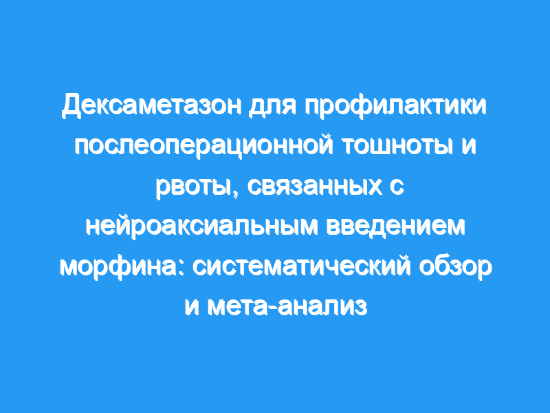 Мы провели систематический обзор для оценки эффективности дексаметазона в уменьшении послеоперационной тошноты, рвоты (PONV), зуда и усиления послеоперационной анальгезии у пациентов, получающих нейроаксиальную анестезию нейроаксиальным морфином.