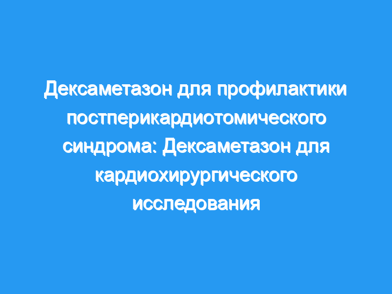 Постперикардиотомический синдром (ППС) является распространенным осложнением после кардиохирургических операций. Патофизиология остается неясной, хотя существуют доказательства того, что хирургическая травма и использование искусственного кровообращения провоцируют иммунный ответ, приводящий к PPS. Мы предположили, что интраоперационная доза дексаметазона снижает риск развития ППС за счет уменьшения этой воспалительной реакции.