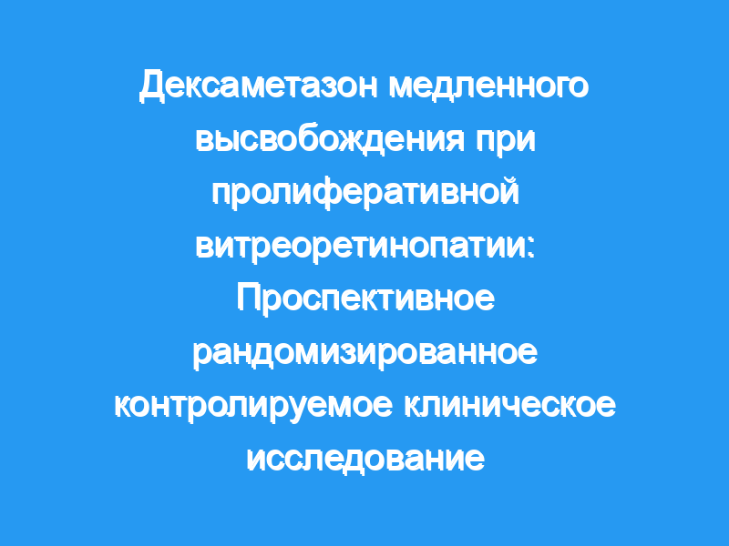 дексаметазон с медленным высвобождением имплантат не улучшил первичный анатомический успех в глазах, перенесших операцию витрэктомии с использованием силиконового масла для ПВР. Дальнейшие клинические испытания показаны для улучшения анатомических и визуальных результатов в этих глазах, но это исследование предполагает, что наблюдается большее снижение CMO через 6 месяцев в витрэктомированных глазах, получавших дексаметазон с замедленным высвобождением.