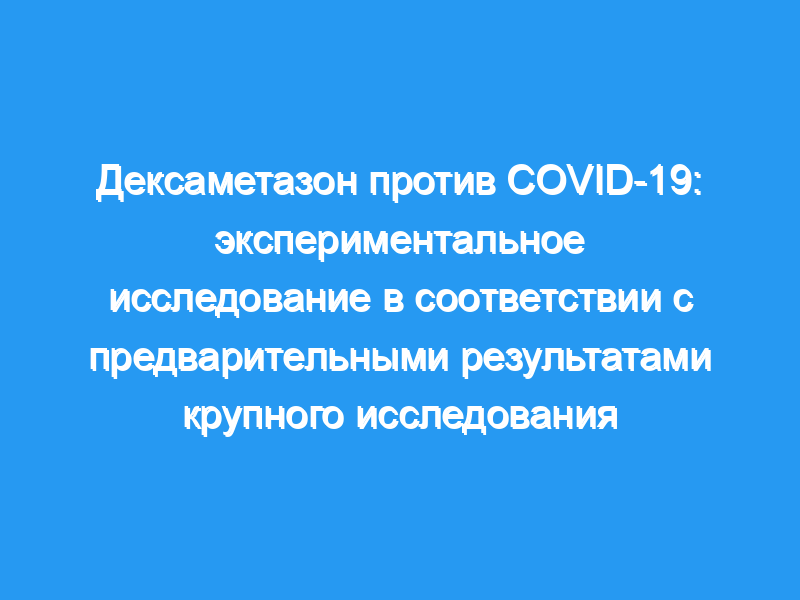 Предварительный отчет о крупном рандомизированном контролируемом исследовании RECOVERY показал многообещающий эффект на выживаемость при лечении дексаметазоном коронавирусной болезни 2019 года (COVID-19). Это исследование было направлено на изучение антигипоксической активности дексаметазона, чтобы понять возможный механизм его действия при летальности, вызванной гипоксией, с помощью экспериментальных моделей гипоксии.