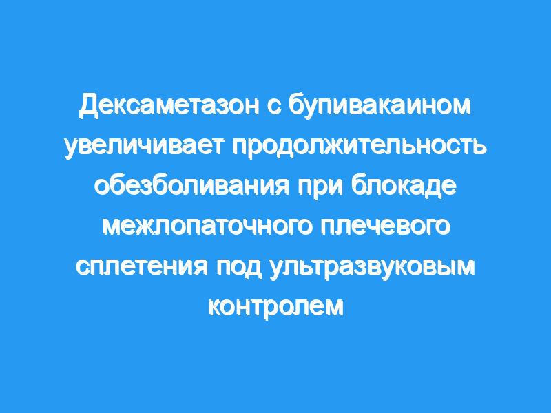 Добавление дексаметазона к межскалиновой блокаде бупивакаином, адреналином и клонидином продлевает сенсорную блокаду и снижает потребление опиоидов.