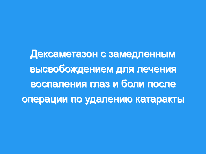 дексаметазон с замедленным высвобождением обеспечивал выведение препарата в течение 1 месяца после операции по удалению катаракты, обеспечивая клинически значимое уменьшение воспаления и боли. Раскрытие финансовой информации: Доктор Маскет является консультантом и акционером компании Ocular Therapeutix, Inc. Ни один другой автор не имеет финансовой или имущественной заинтересованности в каком-либо упомянутом материале или методе.