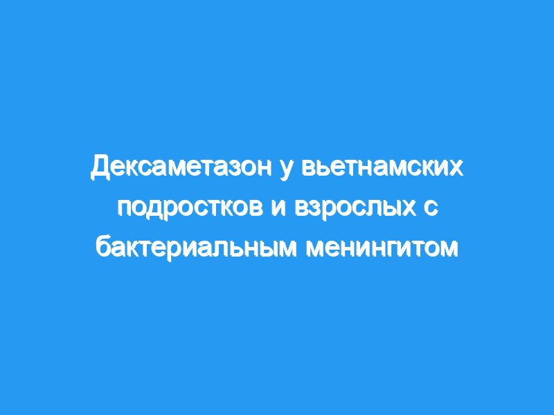 Дексаметазон не улучшает исход у всех подростков и подростков. у взрослых с подозрением на бактериальный менингит положительный эффект, по-видимому, проявляется только у пациентов с микробиологически доказанным заболеванием, включая тех, кто ранее получал лечение антибиотиками. (Текущий номер контролируемых испытаний, ISRCTN42986828 [controlled-trials.com ] .).